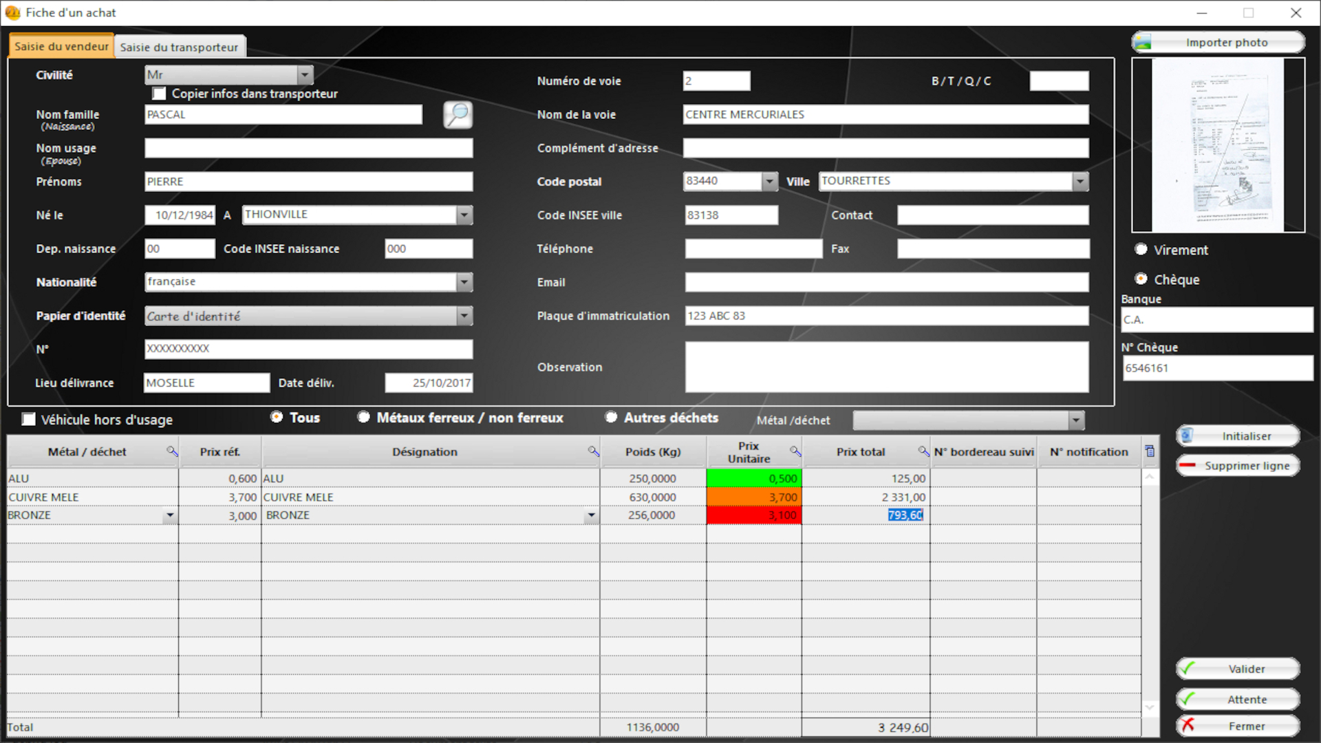 DTI FERRAILLEUR avec ou sans option VHU a pour vocation de simplifier la gestion de l'achat de métaux, depuis l'édition de la quittance de rachat jusqu'à l'envoi des métaux et/ou des déchets à l'exploitation finale ou au broyeur.